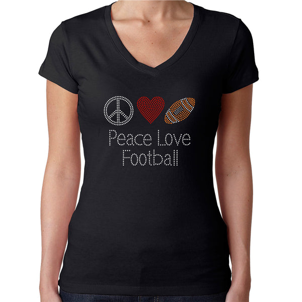 Let us put Some Bling to your Life with Our - Peace Love Heart Football Design Sparkle Rhinestone T-shirt - Made Just For You
