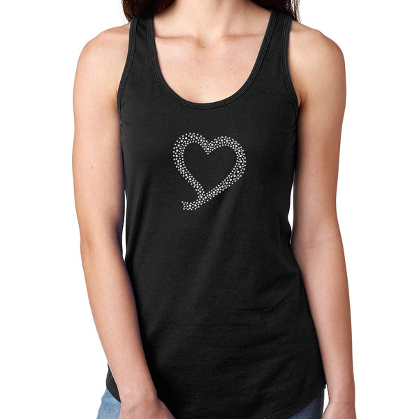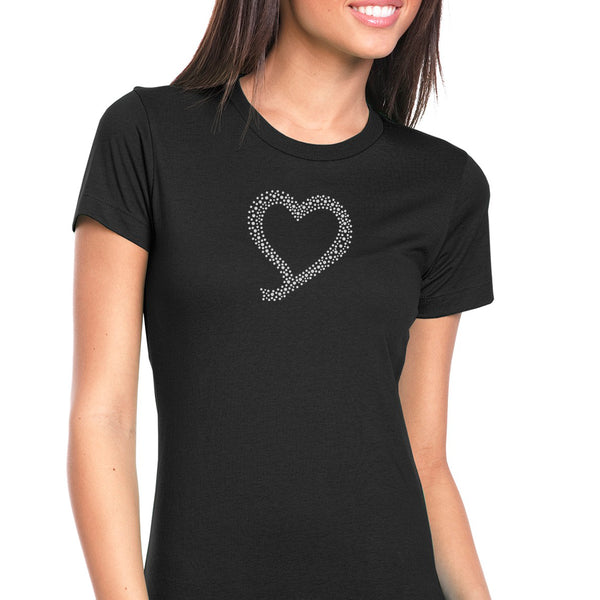 Womens T-Shirt Bling Black Fitted Tee Abstract Heart Clear Silver